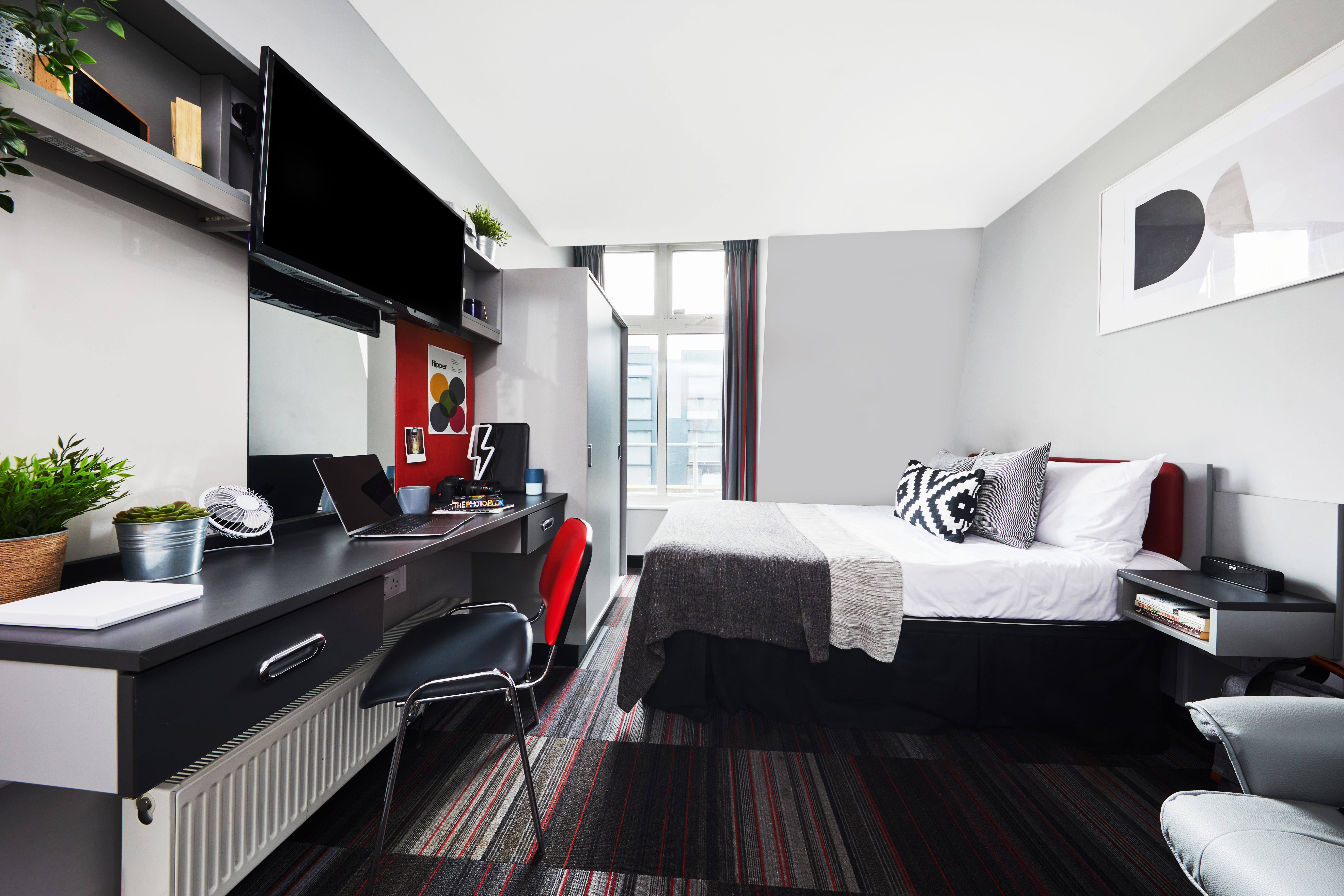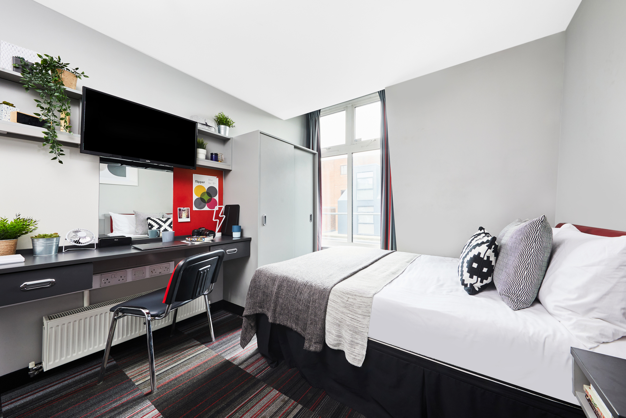 Double Bed, En-suite shower room, Study Desk and Chair, Storage space, Superfast Wi-Fi