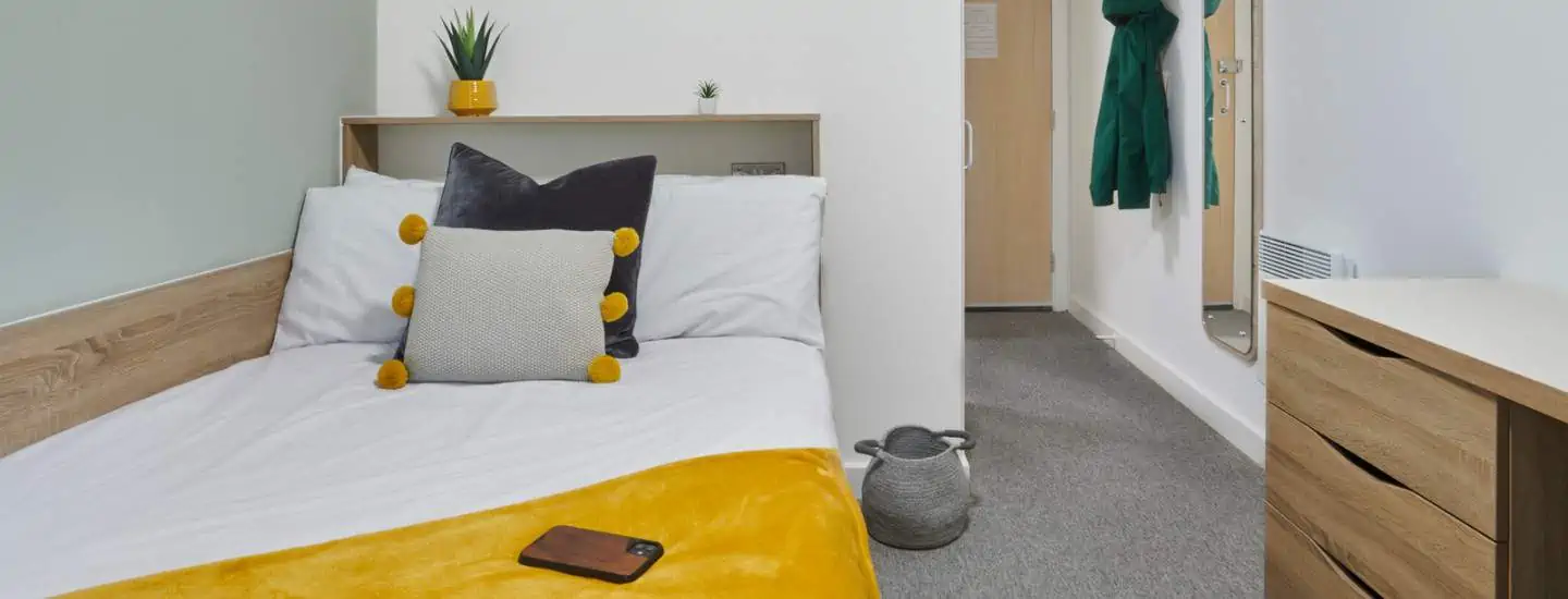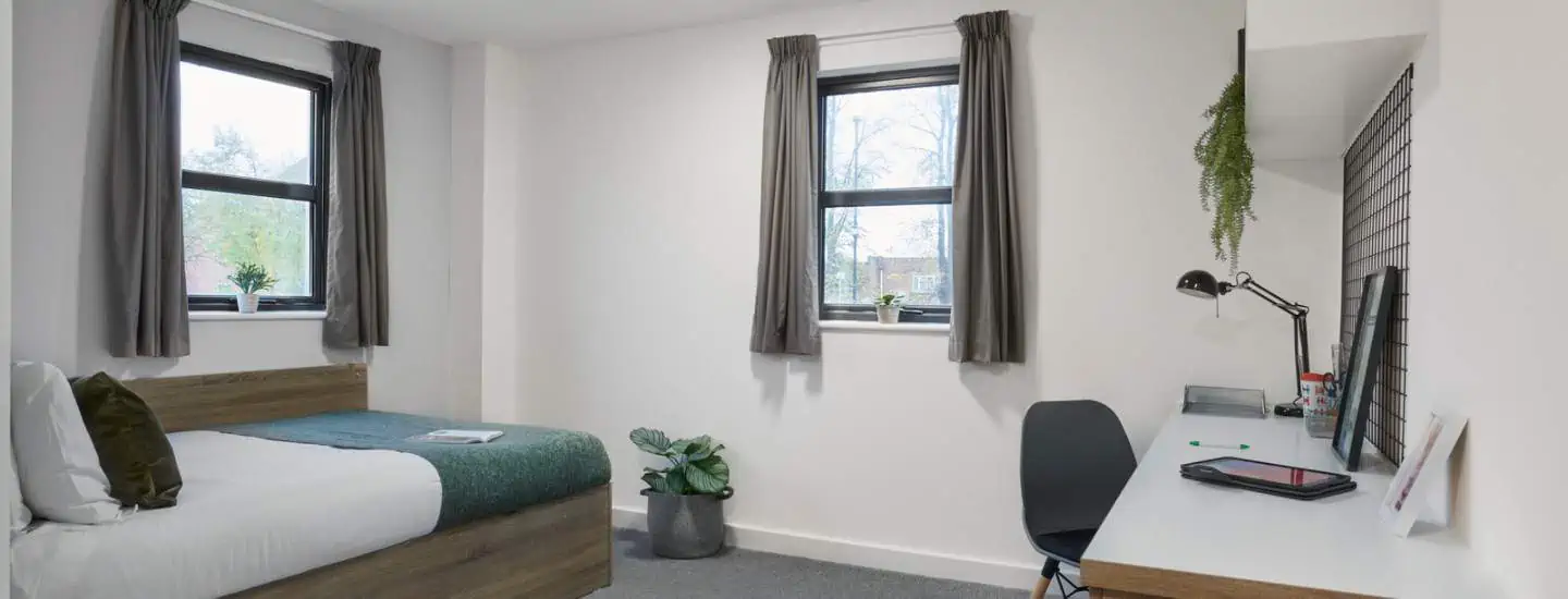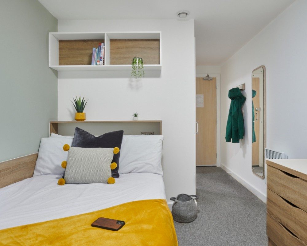 Room Size- From 13m² Bed- ¾ double bed Studying - Large desk and chair Storage - Bedside table Storage - Underbed storage Storage - Spacious wardrobe