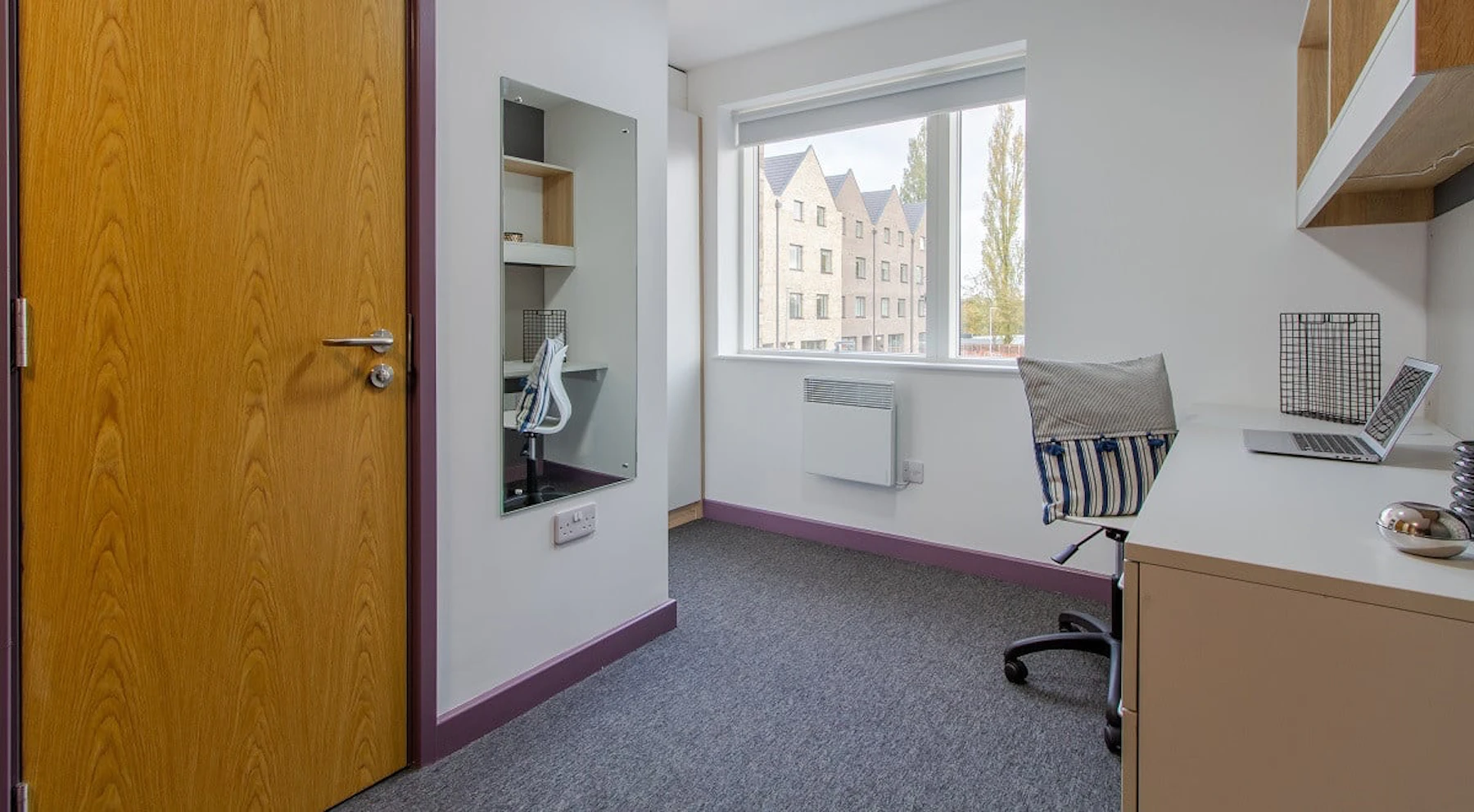 Our Accessible en-suite rooms give students a relaxing and spacious living and study area, measuring around 14m² these rooms come with a 3/4 sized bed, desk, and plenty of storage, in addition to a personal bathroom with modern shower.