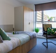XL Premium ensuite (accessible) is part of 5 bed cluster and is nicely built in approximate 20 sqm space holding good storage and living space with all modern facilities attached for easy and comfortable living. It includes fully fitted shared kitchen with a microwave, private bathroom and private bedroom with a 3/4 sized bed, under bed storage, spacious wardrobe and a large study desk-chair