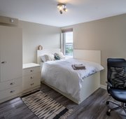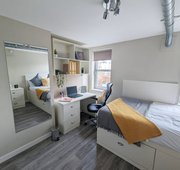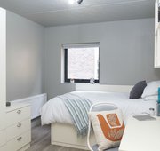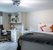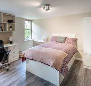 Our standard ensuites offer a stylish home from home feel with your own private stylish bathroom. It offers ample storage space including wardrobe, ¾ size double bed with under bed storage, study desk and chair. Your very own ensuite bathroom comprises a shower unit, toilet and wash basin giving you the extra privacy. With access to a large communal space with a fitted kitchen, including an oven, 4 induction hobs, 50/50 fridge freezer, microwave and vacuum cleaner. Room size can vary from 8.3 - 8.8 sqm