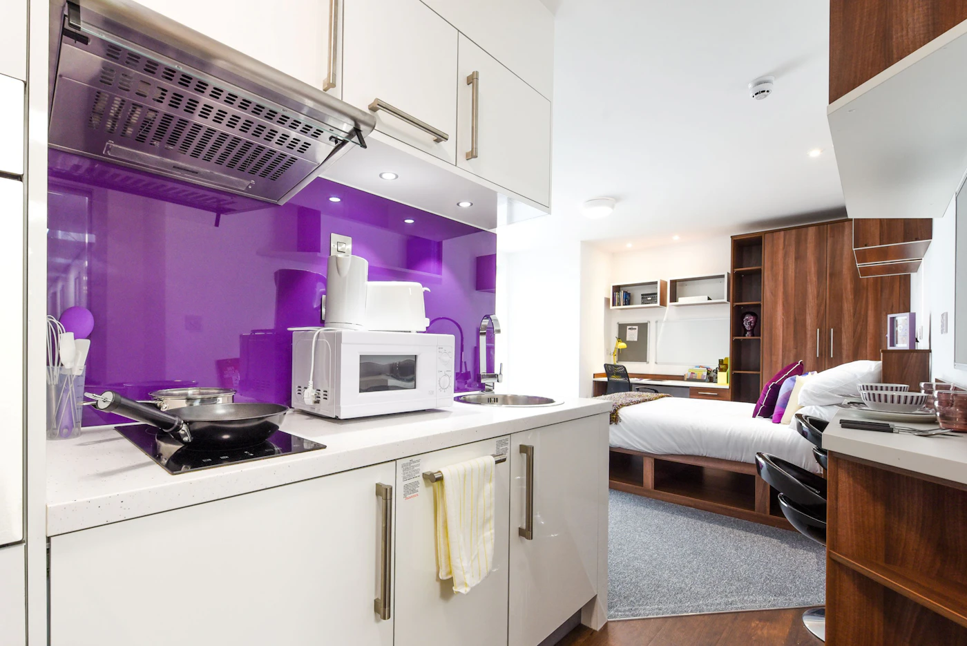 Self-contained kitchen, bathroom and living space
