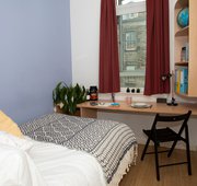 This private luxury studio situated over two floors at the top of the building has amazing views of Edinburgh City Centre. The luxurious studio comes complete with a fully fitted modern kitchenette with dishwasher, a three quarter sized bed, wardrobe space and a large en-suite bathroom. WiFi Dishwasher ¾ Bed Desk & Chair En Suite
