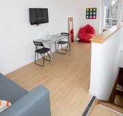 A private studio with a three quarter sized bed, modern kitchenette with dishwasher, stylish en-suite, wardrobe space and a large study desk and chair. This studio is located at the back of the building which is exceptionally quiet. WiFi Dishwasher ¾ Bed Desk & Chair En Suite