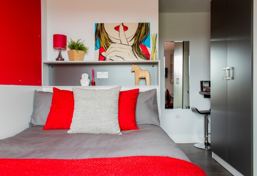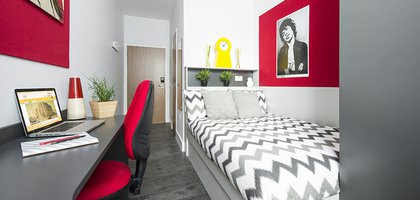 Our most popular studios have enough space for you to study in, without worrying about the mess you left in your kitchen! With a double bed, lots of storage space and space to fit a few friends in, this could just be the room for you. Want to share? Dual Occupancy contracts are available .