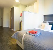 Self-contained accommodation measuring around 24m² featuring ¾ sized bed, your own personal kitchen area, and study area and en-suite bathroom. There are communal facilities available on the ground floor including laundry and common room, all with up to 100Mbps WIFI throughout.