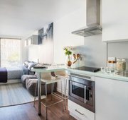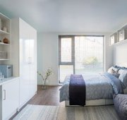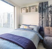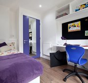 30sq.m Large bed (190x120cm) with under bed storage Bed side table Large desk space Height adjustable study chair Double wardrobe En-suite bathroom with shower High-gloss kitchen Microwave/Combi Oven 4 ring hob Extractor hood Fridge/freezer Breakfast bar with stools Cupboard space Bean bag seat 32" Flat screen TV (Licence not included)