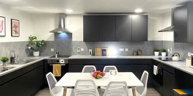 Large En-suite flat with access to shared kitchen and living space. (Images are indicative - range of room layouts available) 17.7m2 average size Most rooms include a 3/4 bed.