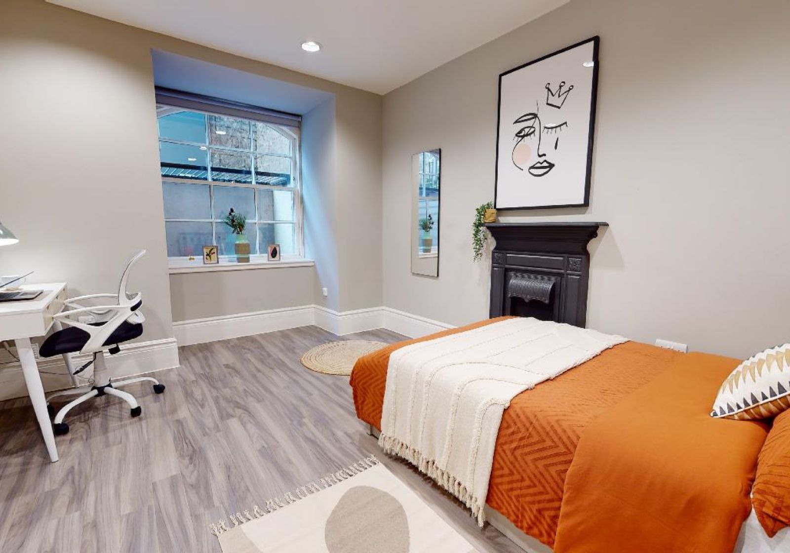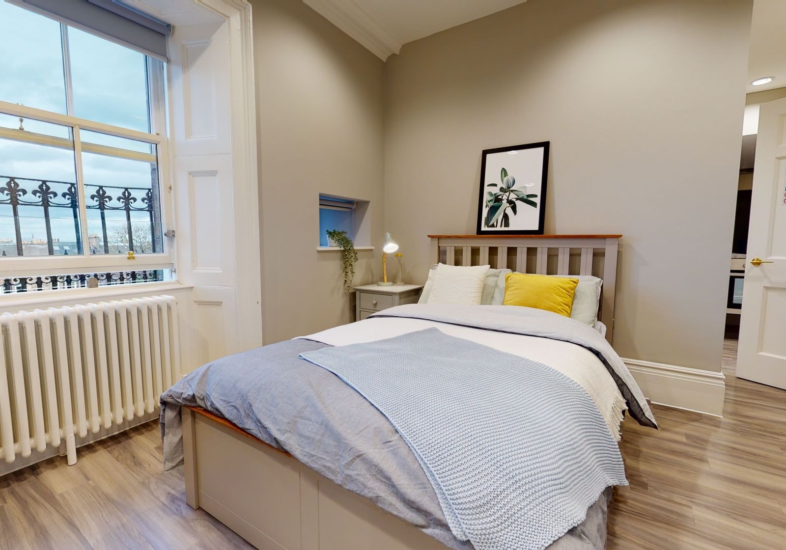 Located in a Georgian townhouse building, these studios feature a small double bed, wardrobe, study area and en suite shower room, plus your own fully fitted kitchen. With unique architectural features, no two are the same.