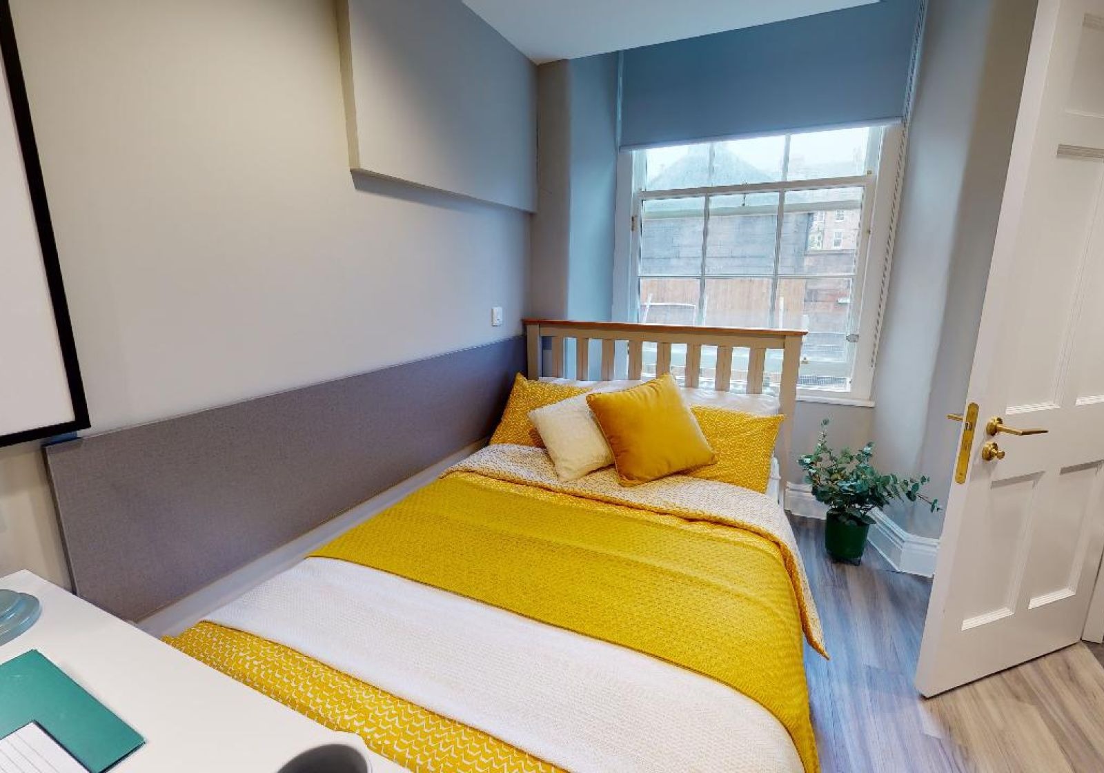 ELLI400-280425On the lower ground and ground floors of our Georgian townhouse wing, these well-equipped rooms offer an impressive 26-28 sq m of living space, just 10 minutes’ walk from the city centre. This spacious room gives you a home you’ll be proud of. There’s a small double bed, wardrobe and study area, as well as a private shower room.