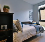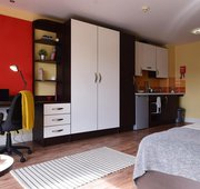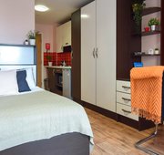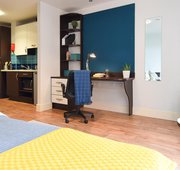 FOUN300-031125The Bronze Studio gives you 18 sq m of space with small double bed, private shower and bathroom, study area plus coffee table and chair. With plenty of storage, you’ll also have access to a shared kitchen and living area, plus the building’s cinema, gym and laundry. One of our most popular room types, the Bronze Studios provide approximately 18 sq m of living space, including double bed, study area, coffee table and tub chair, plenty of storage, kitchen area and en suite shower room. Take a look further down the page to see more of the Bronze Studio's great features.