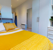 FOUN300-031125Perfect for couples sharing or anyone wanting the maximum amount of space of 25 sq m, our Gold 1 Bed Flats are finished to a high standard. With a separate bedroom and spacious living room and kitchen area with breakfast bar, these flats have plenty of living space. There’s a study desk and chair in the bedroom, plus a private bathroom. With a cinema room, gym and laundry in the building, you’ll be set up for an excellent student lifestyle.