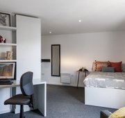 The average 19m2 floor plan ensures plenty of study and living space, as well as ample storage within the stylish fitted furniture. The modern kitchen comes with essential appliances such as a fridge/freezer, microwave, toaster and kettle, with a vacuum cleaner, iron and ironing board also available. Just add bedding, towels and utensils.