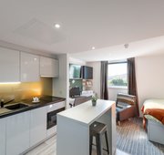 Simply bring your own bedding, towels, utensils and personal affects, as everything else you need is here. Within the average 21m2 space, studios include the stylish fitted furniture, enhanced features, a large bed and modern kitchen, complete with fridge/freezer, microwave and more, help you make the most of your space.