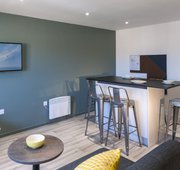 An average of 23m2, the spacious studio comes equipped with stylish fitted furniture, enhanced features, a modern kitchen with breakfast bar, large comfy bed and Smart TV. A fridge/freezer, microwave, kettle and toaster are supplied, an iron, ironing board and vacuum cleaner are also available. Just add your choice of bedding, towels and kitchen utensils.