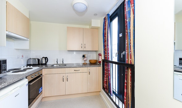 Self-contained studio bedrooms with own kitchen and bathroom Dual-occupancy available at no extra cost Small double bed Personal study space with desk, chair and wardrobes for additional storage. Fully equipped kitchen with combi-oven, kettle and toaster