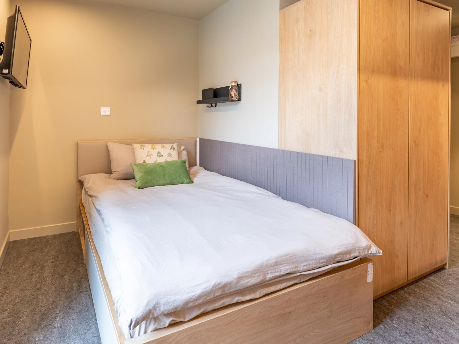 Our Deluxe Studios have everything you need for a great year! 18-19sqm in size with a small double or king size bed. Large desk, En suite toilet & shower room and a mini-kitchenette. Perfect for sharing!