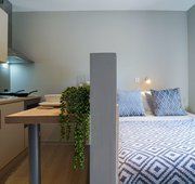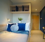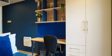 Our modern Classic Ensuite is a stylish room filled with high quality furnishings and amazing floor to ceiling windows. These spacious rooms measure around 13m² and include a three-quarter sized bed, a mirror, generous storage and a practical study desk and chair. You have access to a large communal kitchen area which you will share with your flat mates and is a great place to chill out and catch up. Wind down in our fabulous common room or visit the games room with a pool table!