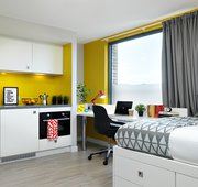 Our studios are all contemporary in design and include the latest technology. They each come with their own en-suite bathroom, private kitchen area and plenty of space for you to study or relax (images are indicative only).