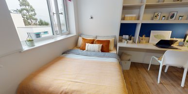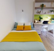 Located a few minutes from the Royal Holloway campus, this room contains all you need to study and relax. Bronze en suite plus is 13.5 sq m in size and located on floors 2-4 of the building. You'll have all the essential features in the bronze en suite plus , with a bed, study area, storage and an en suite shower room. Ideal for getting to know your fellow residents, this room shares a well-equipped kitchen and lounge with flatmates. Our onsite social and study areas are also available for your use anytime.