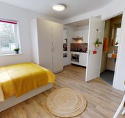 With a larger kitchen and shower room, these studios offer privacy and great facilities. These 19 sq m rooms are location on floors 2-4 of the building. The Silver Studio gives you a bit more living space than our Standard Studio. You'll have a bed, study area, storage and en suite shower room, as well as your own kitchenette with combi-oven, hob, fridge and dining area. Our onsite social and study areas are also available for your use anytime.