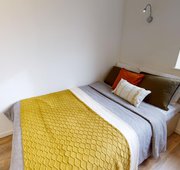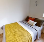 Featuring dual-aspect windows, this studio enjoys lots of natural light and offers a good amount of living space. Located on the lower floors of the building. The Gold Studio is a great choice if you're looking for space and privacy. You'll have a bed, study area, storage and en suite shower room, as well as your own kitchenette with combi-oven, hob, fridge and dining area. Our onsite social and study areas are also available for your use anytime.