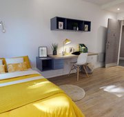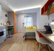 PODI300-031125Our Gold Two-Bed Apartment features two separate bedrooms. You'll share a well-equipped kitchen, living area and shower room, and have the use of our onsite gym, social and study areas.