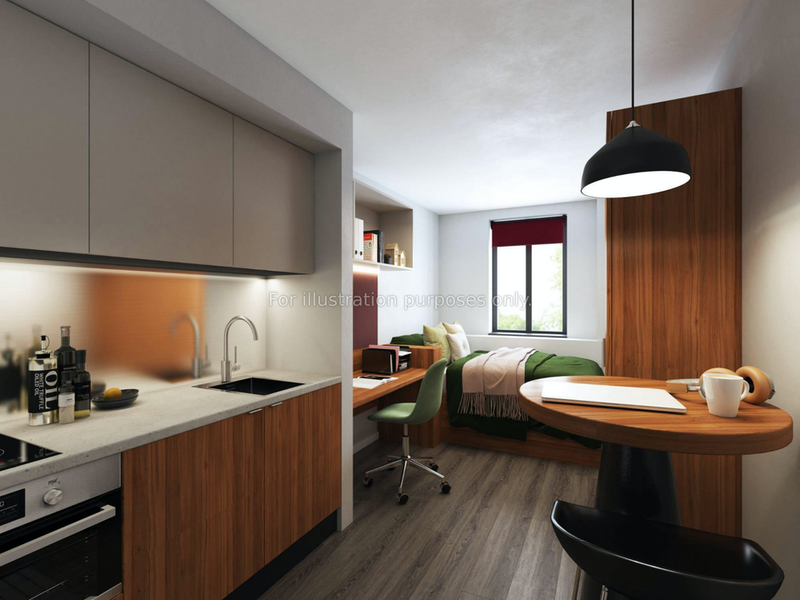 For students wanting a modern and chic student apartment furnished with all the amenities they could need, our Executive Plus Studio is the perfect option. Slightly larger in size than our Deluxe option, this room style features a snug double bed for resting up after a busy day, a large study desk for cracking on with work, as well as your own fully-equipped kitchen for cooking up something tasty.
