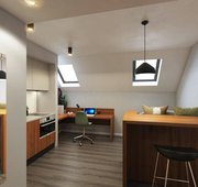 Enjoy in your Penthouse Studio, a modern and chic student apartment furnished with all the amenities that you could need. Slightly larger in size than our other options, this room style features a snug double bed for resting up after a busy day, a large study desk for cracking on with work, as well as your own fully-equipped kitchen for cooking up something tasty.