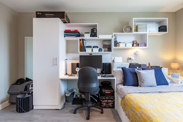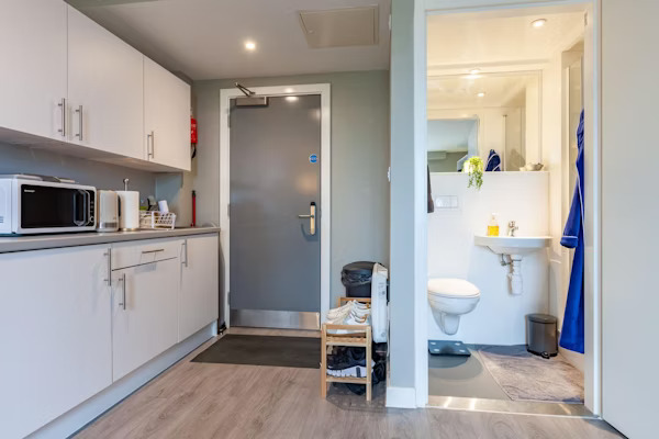 Looking to enhance your university experience? If so, why not opt to live in our Bronze Studio (17m2 to 18m2) and thrive from the privacy of your own room Featuring a cosy bed, lots of storage and your very own study area, this space is ideal for students who enjoy living in the lapse of luxury. Your new room is equipped with brand new, modern kitchen facilities including an electric hob, fridge/freezer, full size oven and microwave.