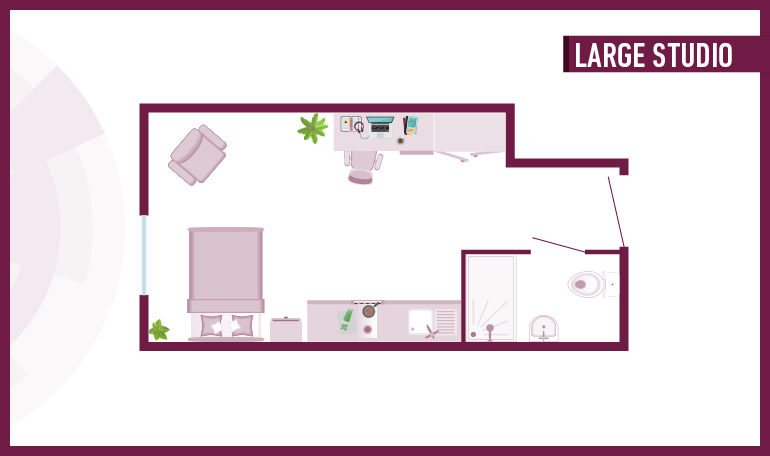 Room sizes may vary from 23.0m2 - 26.1m2 - Bed - Chair & desk - Wardrobe - Private en-suite - Private kitchen with hob, oven fridge/freezer - Free dual occupancy! Subject to availability, speak to the site team for more information.