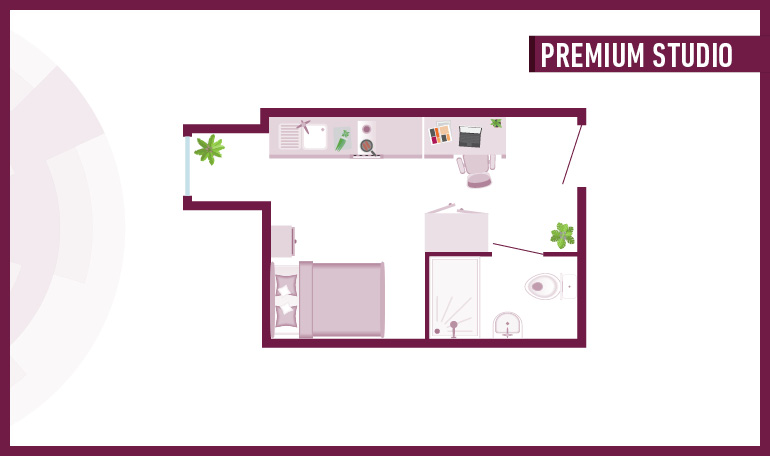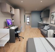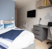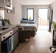 Room sizes may vary from 29.2m2 - 31.2m2 - Bed - Chair & desk - Wardrobe - Private en-suite - Private kitchen with hob, oven fridge/freezer - Free dual occupancy! Subject to availability, speak to the site team for more information.