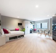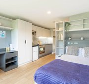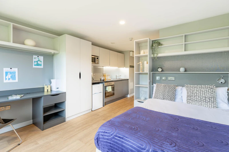 Elevate your student experience with our Premium Studio, offering 17-18 sqm of space, spread across all floors. Enjoy the freedom and comfort of your own private studio, complete with a cosy double bed, contemporary ensuite bathroom, modern kitchenette and ample storage space to keep your belongings safely. With ample room to unwind and study, you can enjoy student living at its finest.