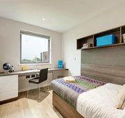 Great affordability with a small double bed alongside your own en suite shower room, ample storage and a shared kitchen/living room. Average room 13 sqm.