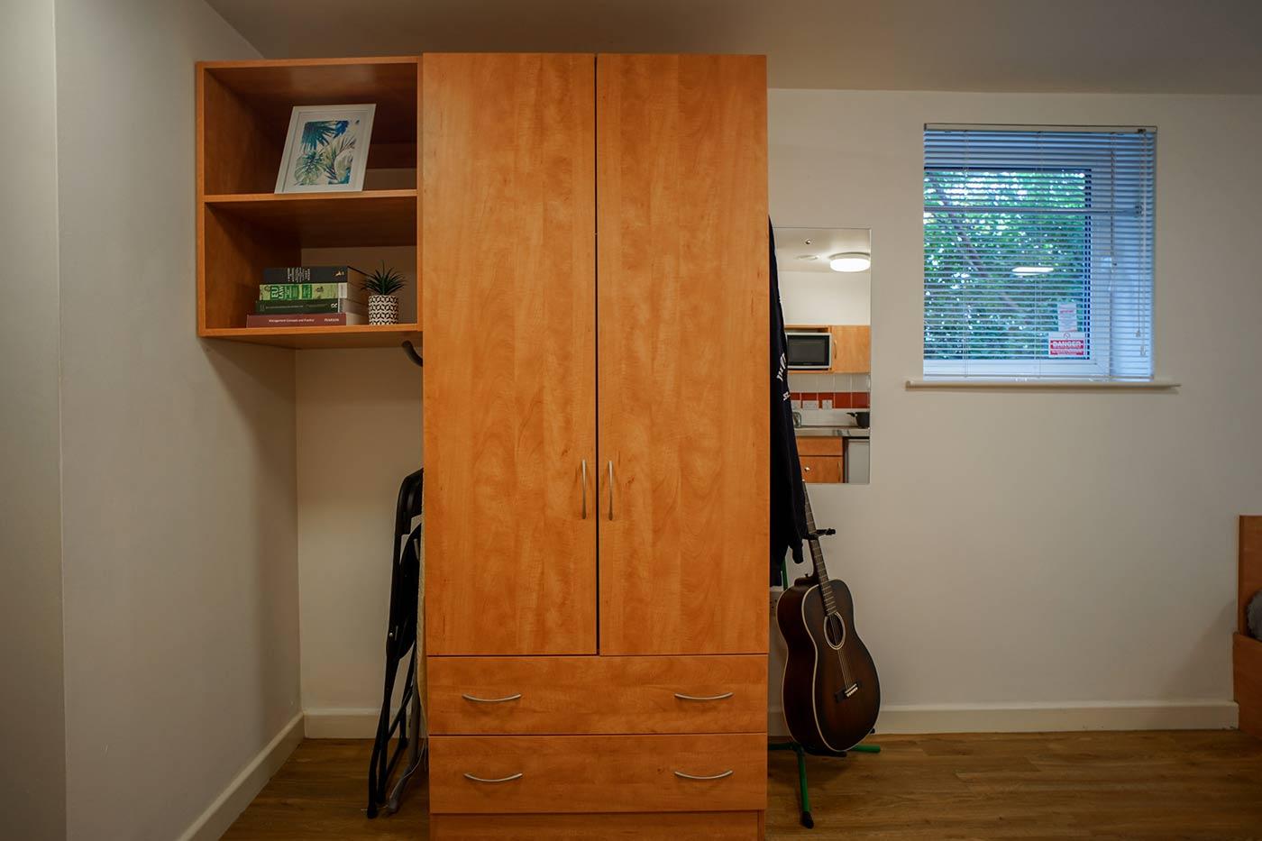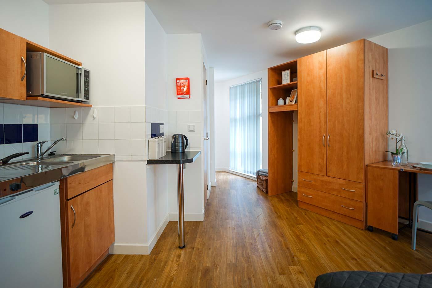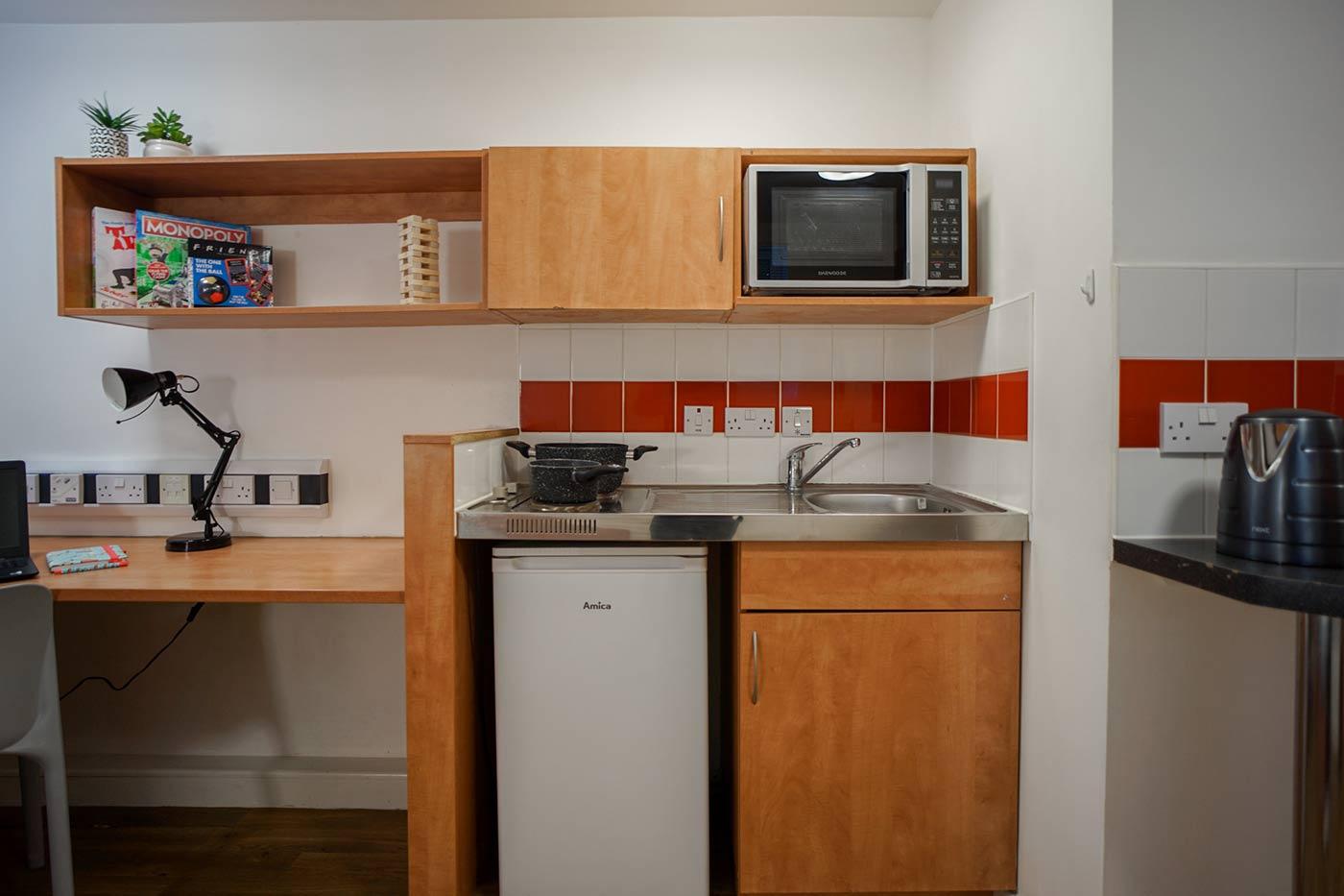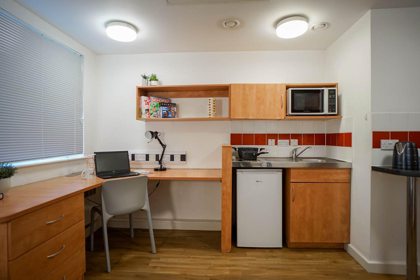 Our Gold Studio is a spacious self-contained comfortable studio measuring 18m² featuring a double bed, kitchenette, en-suite bathroom, study area, wardrobe with super fast Wi-fi.