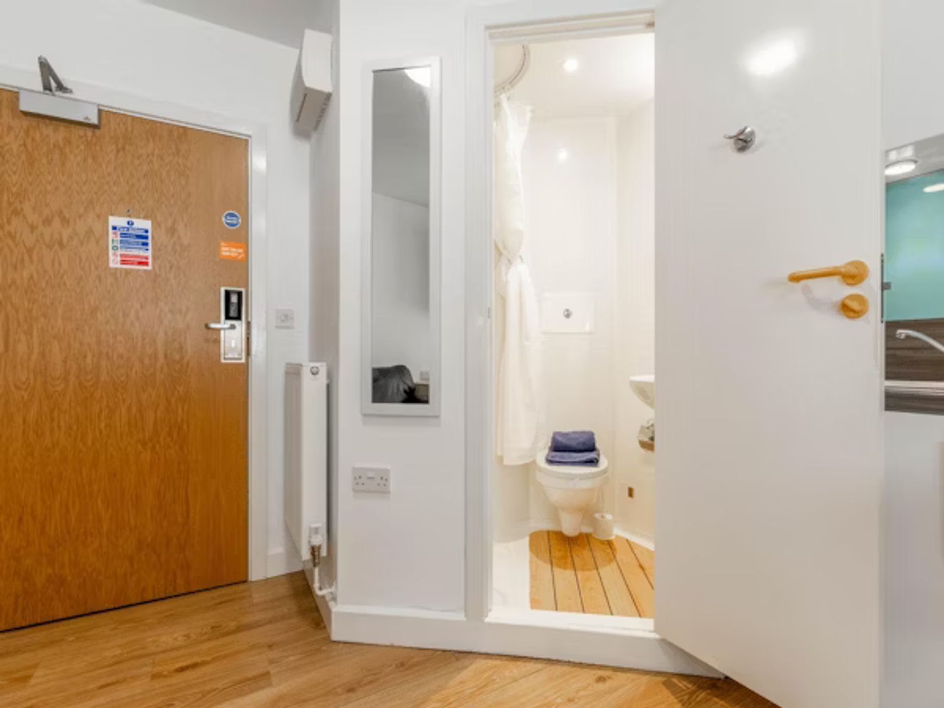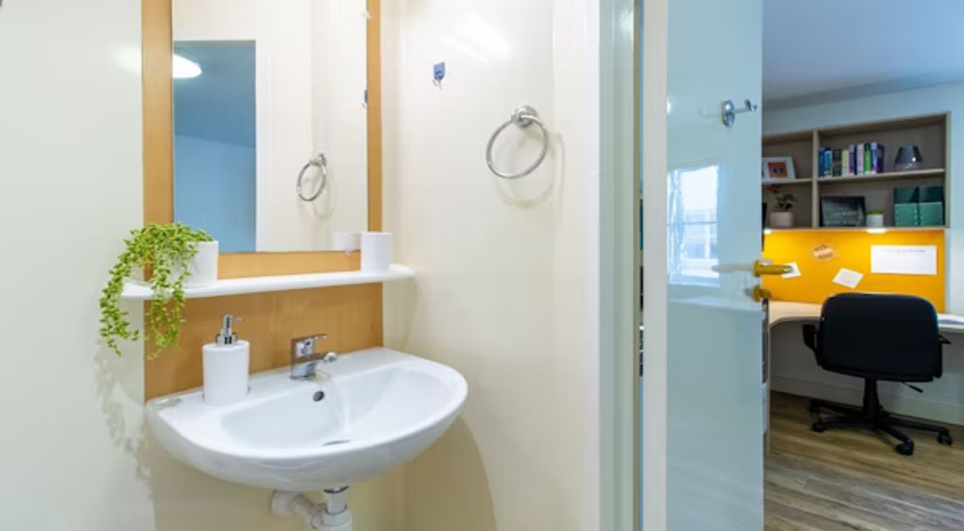 With a size of approximately 18 – 23 sqm area, the Classic Studios features your own cosy double bed with underbed storage. A large window lets in natural light, making the space feel fresh and inviting. Prepare your favourite meals in your private kitchen, complete with a hob, microwave, fridge freezer. The contemporary gloss units and a vibrant splashback add a pop of colour and style. Stay focused with your own desk, comfortable chair, shelving, and pinboard. Wall mounted lighting ensures the space is well lit for those late night study sessions. Kick back in your own lounge area with a TV, ideal for streaming your favourite shows. The dining table and comfy chairs make it a great spot for eating or socialising with a friend. Benefit from the convenience of your own en-suite bathroom with shower, toilet, and basin.