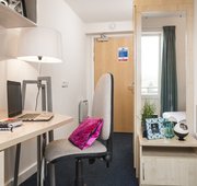 4ft Bed Study Desk and Chair Wi-Fi Wardrobe & Shelves Heating En-suite Private Kitchen Area