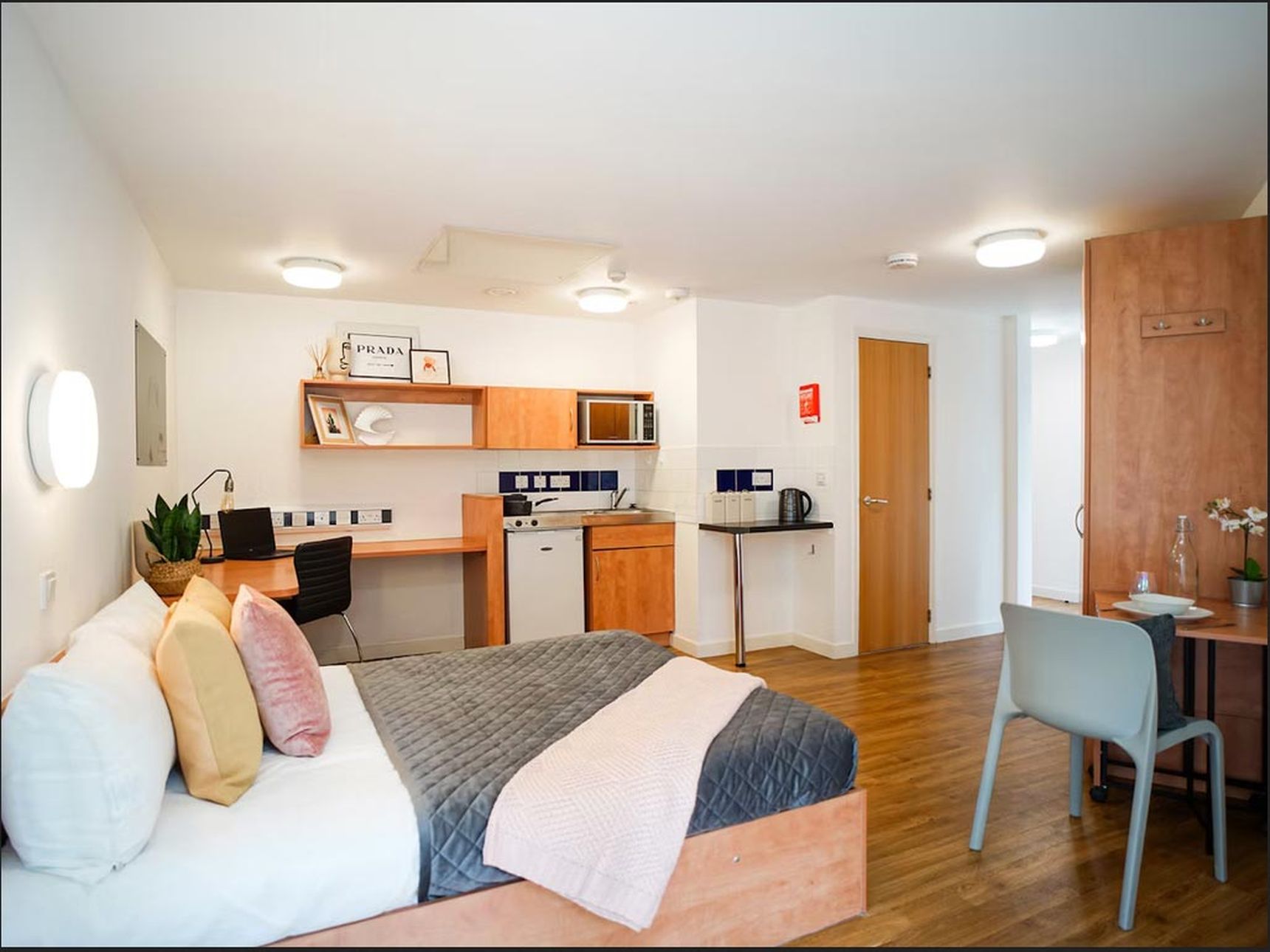 Students who love independent living can choose the studio rooms at student accommodation in Exeter. A studio includes a modern kitchenette and a private bathroom. Studios offer additional cooking facilities like a fridge, microwave, and hob. A studio room is the perfect space to enjoy a self-sufficient lifestyle.