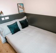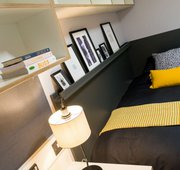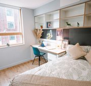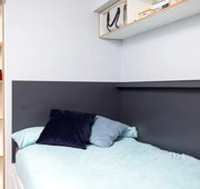 Shared in a flat between 9 to 11 others, these rooms are the perfect balance of private and social. Each room has a small double bed, en-suite, study space and plenty of storage. For moments you want to socialise, there’s a communal kitchen with a dining and TV lounge area.