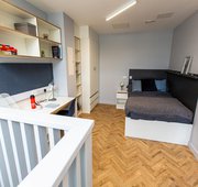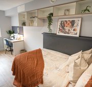 Our Platinum range of En-suites are 15-16sqm in size and take the shared living to the max. Youll have the same great features as our classic En-suites a small double bed, en-suite, study space, plenty of storage, and a communal area but youll be sharing with less people.