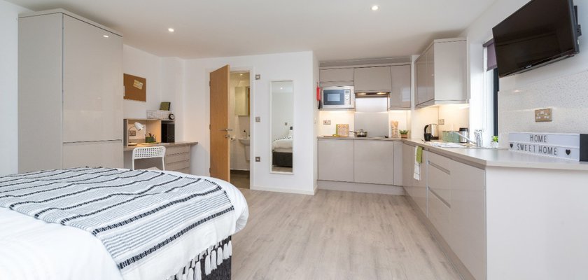 A trendy selection of studios, all with double beds, private kitchens, en-suite bathrooms, and CCTV throughout. Each studio is all bills inclusive, has super-speed broadband, communal washing facilities, communal garden space, and a lounge for you to relax, unwind and socialize.