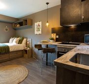 The Accessible Studio is crafted with care to ensure the space blends functionality and comfort seamlessly. It offers a cosy bed for restful nights, a dedicated study desk to keep you focused, and a private bathroom designed with accessibility needs in mind. The kitchen is equipped with essentials making meal prepping a breeze and the ample storage space ensures your room is always neat.