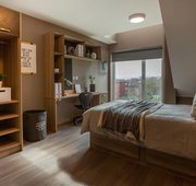 The Bronze Studio is a cosy yet well-appointed space designed to suit students who appreciate compact living with every essential. Spread across 15 square metres, this studio offers a comfortable bed, a sleek study desk and chair, and a private kitchen fitted with all the basics for independent living. A private bathroom adds an extra level of convenience, making the Bronze Studio a practical and comfortable choice. Hurry up and book your studio and enjoy luxury student living!