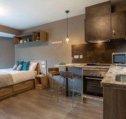 As the largest single studio on-site, the Platinum Studio has 27 square metres of sophisticated living space. This studio combines luxury with functionality, offering a spacious bed, a well-designed study area, and a private bathroom. The kitchen is equipped with essential amenities, making meal preparation a pleasure. Plus with ample storage space, you can store your belongings safely.