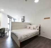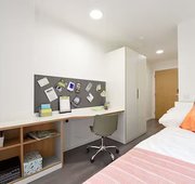 Room Size : 13.2m² Small double bed Underbed storage, wardrobe, personal study space with desk and chair included in the room Communal kitchen and living space with up to 5 ensuite rooms per flat