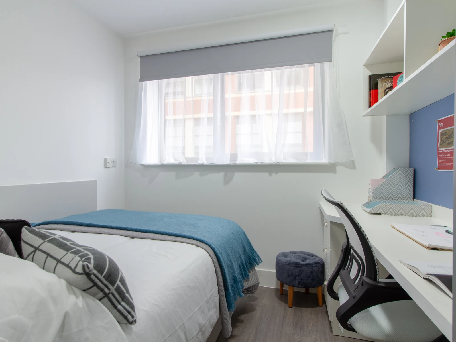 Looking for a room with a view? Located on the top two floors, these limited en suites have the best views in the building! These newly refurbished en suite rooms have a small double bed, along with your own en suite shower room, storage, a space to study, and a shared kitchen and living room.