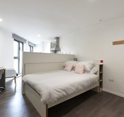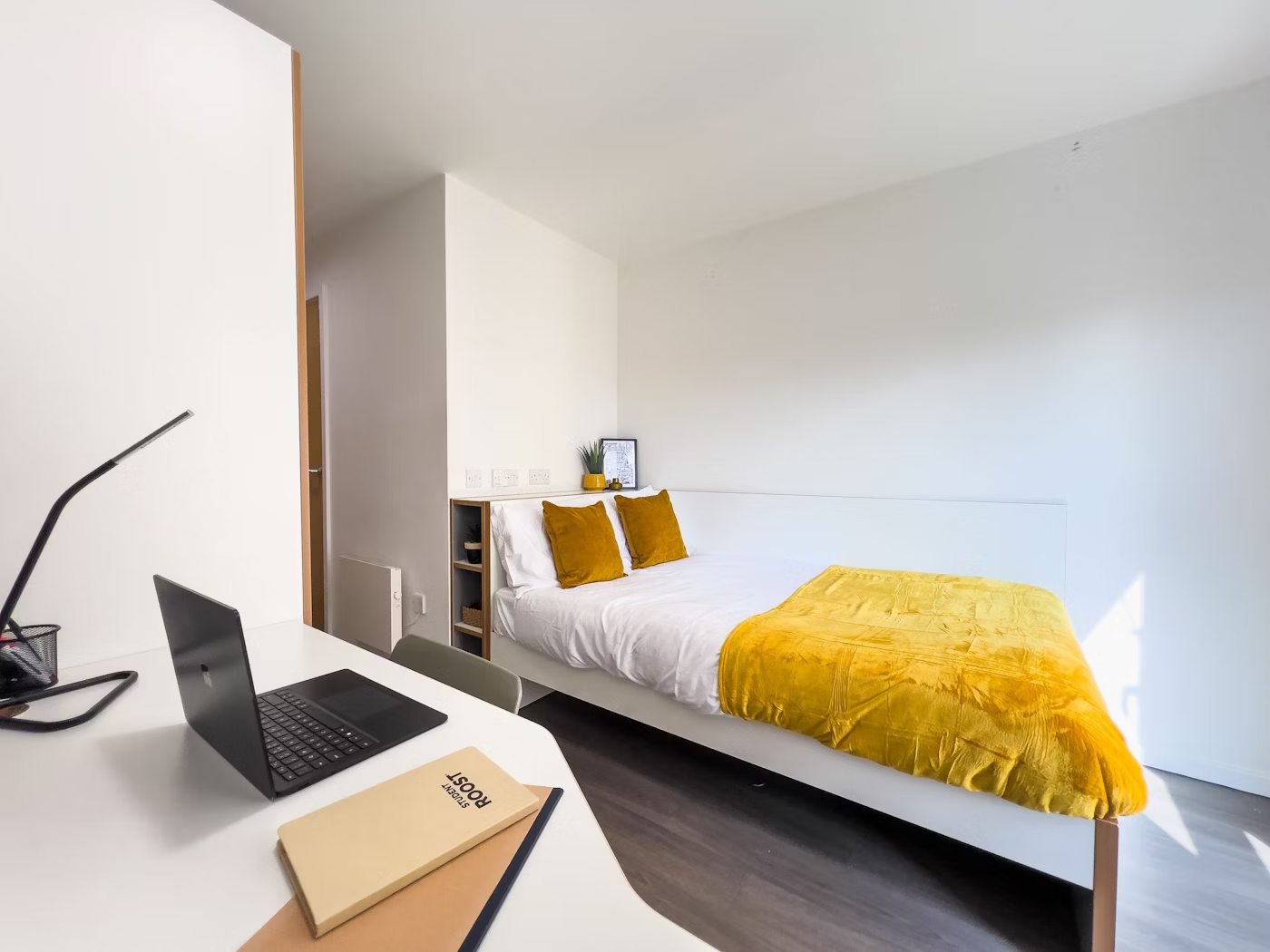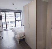 Self-contained kitchen, bathroom and living space Dual-occupancy available Approximately 17-27m² Double bed Underbed storage, wardrobe, personal study space with desk and chair included in the room