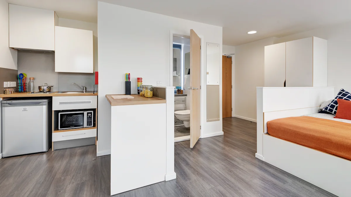 If you like to spread out, then this more spacious studio could be for you. The top notch facilities feature an en-suite shower room, small double bed, storage, fitted kitchen and study area.