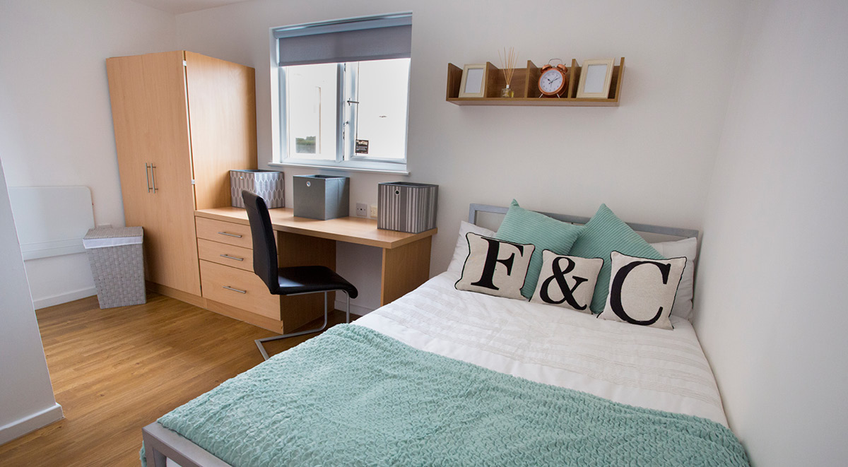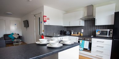 At the Firhill Court student accommodation, we offer cluster flats with 4-6 ensuite bedrooms. The rooms come with a large and comfortable bed that results in a sound sleep. Each room at Firhill Court is accompanied by a designated study area that will prove beneficial in helping you study better. A large window in each room lets plenty of sunlight in. Ensuite bathrooms with a shower and sink make life easier without hindering your privacy. You’ll also have ample storage with modern fittings, allowing all your belongings to have a place of their own. The flats at Firhill Court accommodation have a modern integrated kitchen that will prove to be a blessing when those hunger pangs start kicking in, especially when you’re up studying late. You could take a break and refresh your mind by watching some TV in the lounge area. The place is also ideal to catch up with your flatmates.