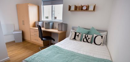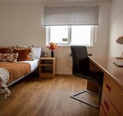 An en-suite bedroom within a 4 bed cluster flat measuring approx 10ft by 13ft with a ¾ bed, en-suite bathroom which measure approx 3ft by 4ft study area and wardrobe. The shared area includes a lounge and kitchen area with TV and up to 100Mbps WIFI throughout.